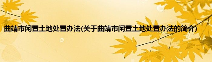 曲靖市闲置土地处置办法(关于曲靖市闲置土地处置办法的简介)