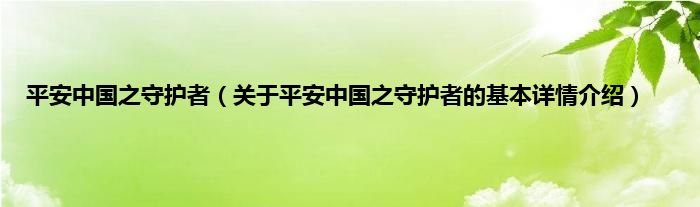 本文关于平安中国之守护者的基本详情介绍就讲解完毕,希望对大家有所帮助。
