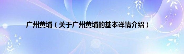 本文关于广州黄埔的基本详情介绍就讲解完毕,希望对大家有所帮助。