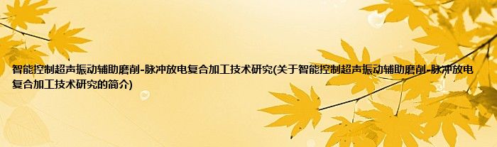大家好,智能控制超声振动辅助磨削-脉冲放电复合加工技术研究,关于智能控制超声振动辅助磨削-脉冲放电复合加工技术研究的简介很多人还不知道,现在让我们一起来看看吧!