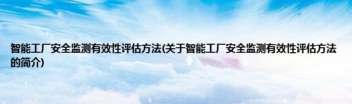 智能工厂安全监测有效性评估方法(关于智能工厂安全监测有效性评估方法的简介)