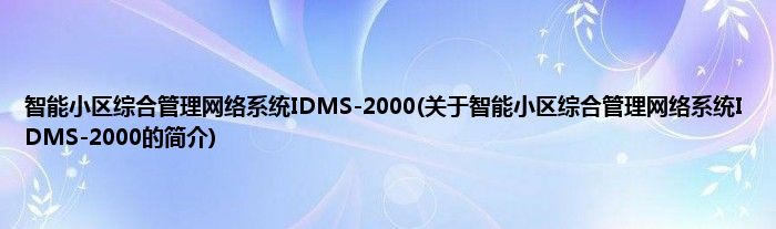 本文关于智能小区综合管理网络系统IDMS-2000的简介就讲解完毕,希望对大家有所帮助。