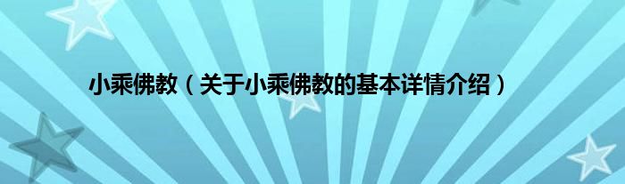 本文关于小乘佛教的基本详情介绍就讲解完毕,希望对大家有所帮助。