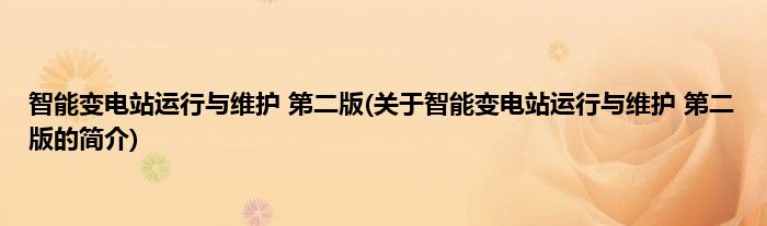 本文关于智能变电站运行与维护 第二版的简介就讲解完毕,希望对大家有所帮助。