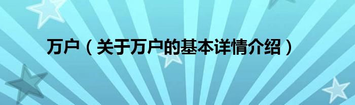 本文关于万户的基本详情介绍就讲解完毕,希望对大家有所帮助。