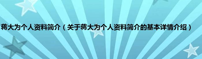 本文关于蒋大为个人资料简介的基本详情介绍就讲解完毕,希望对大家有所帮助。
