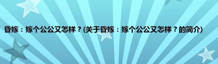 大家好,昏嫁:嫁个公公又怎样?,关于昏嫁:嫁个公公又怎样?的简介很多人还不知道,现在让我们一起来看看吧!