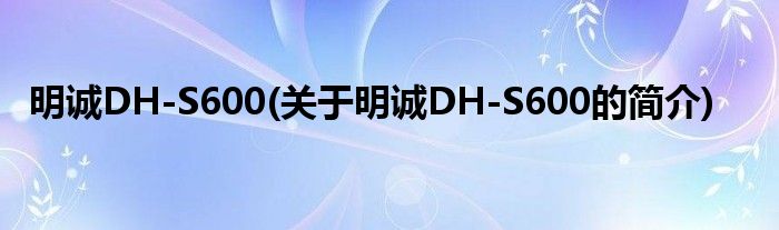 本文关于明诚DH-S600的简介就讲解完毕,希望对大家有所帮助。