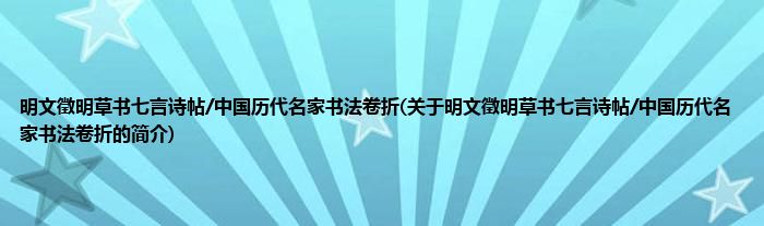 本文关于明文徵明草书七言诗帖/中国历代名家书法卷折的简介就讲解完毕,希望对大家有所帮助。