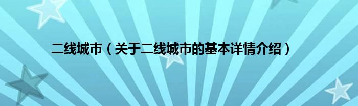本文关于二线城市的基本详情介绍就讲解完毕,希望对大家有所帮助。