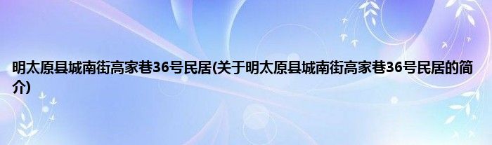 大家好,明太原县城南街高家巷36号民居,关于明太原县城南街高家巷36号民居的简介很多人还不知道,现在让我们一起来看看吧!