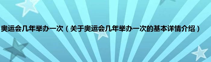 本文关于奥运会几年举办一次的基本详情介绍就讲解完毕,希望对大家有所帮助。