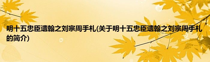 本文关于明十五忠臣遗翰之刘宗周手札的简介就讲解完毕,希望对大家有所帮助。