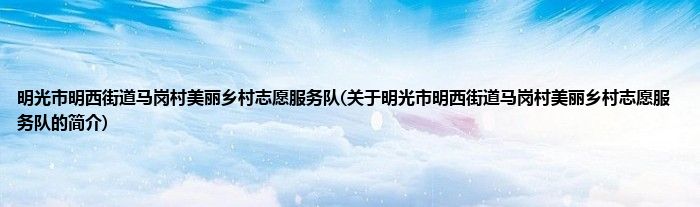 本文关于明光市明西街道马岗村美丽乡村志愿服务队的简介就讲解完毕,希望对大家有所帮助。