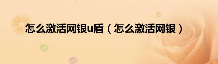 大家好,精选小编来为大家解答以上问题。怎么激活网银u盾,怎么激活网银很多人还不知道,现在让我们一起来看看吧!