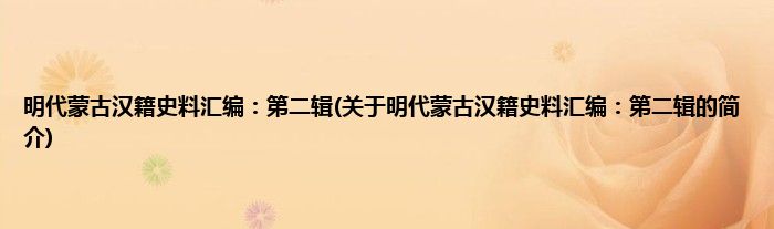 本文关于明代蒙古汉籍史料汇编:第二辑的简介就讲解完毕,希望对大家有所帮助。