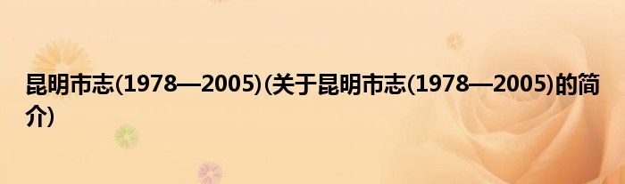 本文关于昆明市志(1978—2005)的简介就讲解完毕,希望对大家有所帮助。