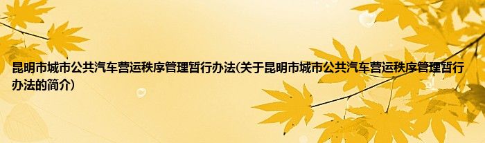 大家好,昆明市城市公共汽车营运秩序管理暂行办法,关于昆明市城市公共汽车营运秩序管理暂行办法的简介很多人还不知道,现在让我们一起来看看吧!
