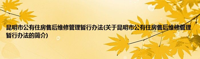 本文关于昆明市公有住房售后维修管理暂行办法的简介就讲解完毕,希望对大家有所帮助。
