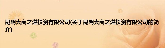 本文关于昆明大商之道投资有限公司的简介就讲解完毕,希望对大家有所帮助。