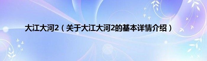 本文关于大江大河2的基本详情介绍就讲解完毕,希望对大家有所帮助。