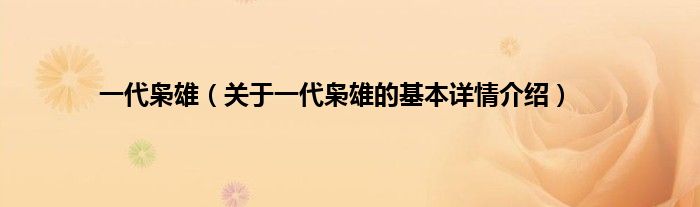 本文关于一代枭雄的基本详情介绍就讲解完毕,希望对大家有所帮助。