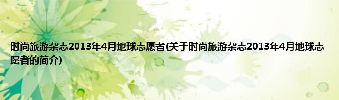 本文关于时尚旅游杂志2013年4月地球志愿者的简介就讲解完毕,希望对大家有所帮助。