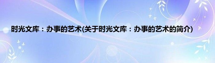 大家好,时光文库:办事的艺术,关于时光文库:办事的艺术的简介很多人还不知道,现在让我们一起来看看吧!