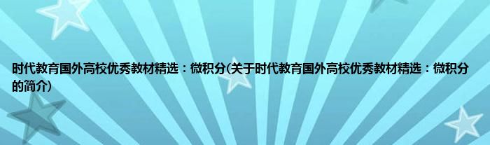 本文关于时代教育国外高校优秀教材精选:微积分的简介就讲解完毕,希望对大家有所帮助。