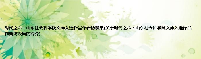 大家好,时代之声:山东社会科学院文库入选作品作者访谈集,关于时代之声:山东社会科学院文库入选作品作者访谈集的简介很多人还不知道,现在让我们一起来看看吧!