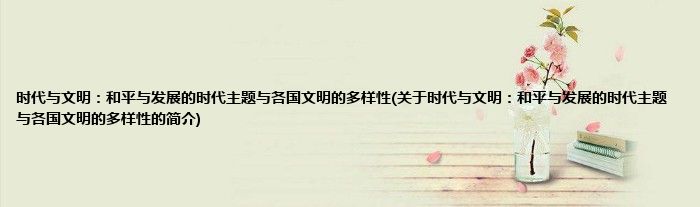 本文关于时代与文明:和平与发展的时代主题与各国文明的多样性的简介就讲解完毕,希望对大家有所帮助。