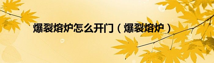 大家好,精选小编来为大家解答以上问题。爆裂熔炉怎么开门,爆裂熔炉很多人还不知道,现在让我们一起来看看吧!