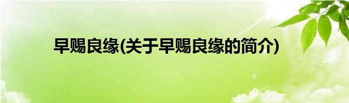 大家好,早赐良缘,关于早赐良缘的简介很多人还不知道,现在让我们一起来看看吧!