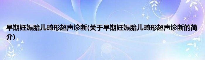 本文关于早期妊娠胎儿畸形超声诊断的简介就讲解完毕,希望对大家有所帮助。