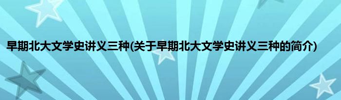 大家好,早期北大文学史讲义三种,关于早期北大文学史讲义三种的简介很多人还不知道,现在让我们一起来看看吧!
