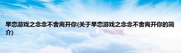 大家好,早恋游戏之念念不舍离开你,关于早恋游戏之念念不舍离开你的简介很多人还不知道,现在让我们一起来看看吧!