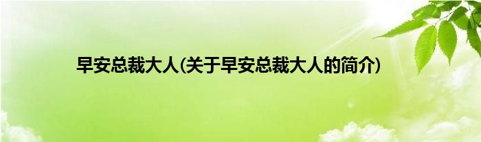 本文关于早安总裁大人的简介就讲解完毕,希望对大家有所帮助。