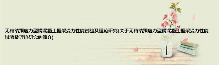 本文关于无粘结预应力型钢混凝土框架受力性能试验及理论研究的简介就讲解完毕,希望对大家有所帮助。
