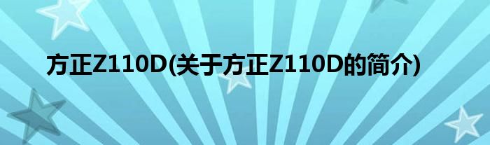 大家好,方正Z110D,关于方正Z110D的简介很多人还不知道,现在让我们一起来看看吧!