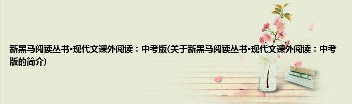 本文关于新黑马阅读丛书·现代文课外阅读:中考版的简介就讲解完毕,希望对大家有所帮助。