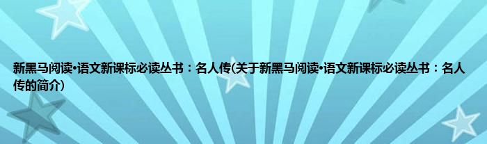 大家好,新黑马阅读·语文新课标必读丛书:名人传,关于新黑马阅读·语文新课标必读丛书:名人传的简介很多人还不知道,现在让我们一起来看看吧!