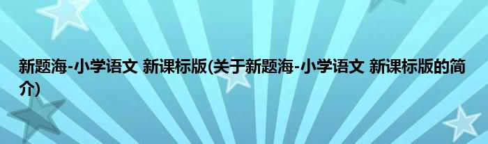 本文关于新题海-小学语文 新课标版的简介就讲解完毕,希望对大家有所帮助。