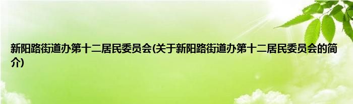 本文关于新阳路街道办第十二居民委员会的简介就讲解完毕,希望对大家有所帮助。