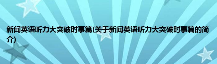 本文关于新闻英语听力大突破时事篇的简介就讲解完毕,希望对大家有所帮助。