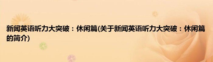 大家好,新闻英语听力大突破:休闲篇,关于新闻英语听力大突破:休闲篇的简介很多人还不知道,现在让我们一起来看看吧!