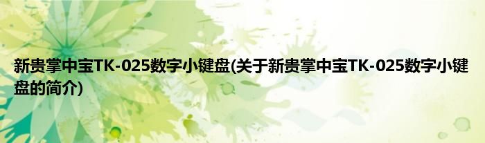 大家好,新贵掌中宝TK-025数字小键盘,关于新贵掌中宝TK-025数字小键盘的简介很多人还不知道,现在让我们一起来看看吧!