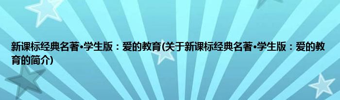 本文关于新课标经典名著·学生版:爱的教育的简介就讲解完毕,希望对大家有所帮助。