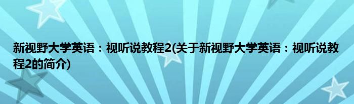 本文关于新视野大学英语:视听说教程2的简介就讲解完毕,希望对大家有所帮助。
