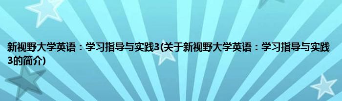 本文关于新视野大学英语:学习指导与实践3的简介就讲解完毕,希望对大家有所帮助。
