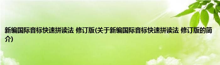 大家好,新编国际音标快速拼读法 修订版,关于新编国际音标快速拼读法 修订版的简介很多人还不知道,现在让我们一起来看看吧!